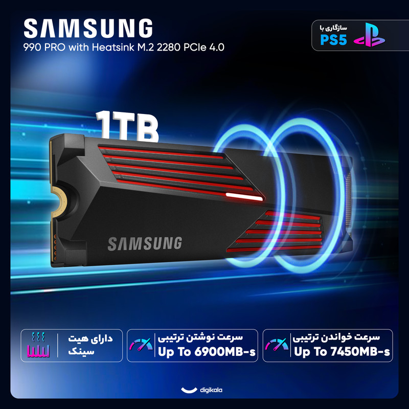 اس اس دی اینترنال PCIe Gen4 x4 سامسونگ مدل PRO 990 with Heatsink ظرفیت 1 ترابایت
