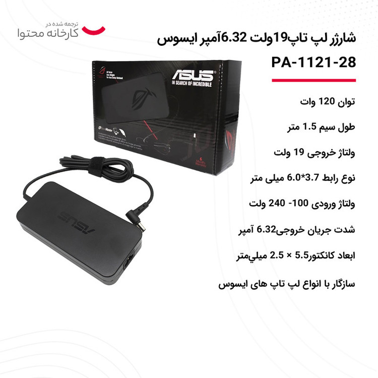 ظرفیت این شارژر 6.32 آمپر است. کانکتور این شارژر ، پین مرکزی دارد.
